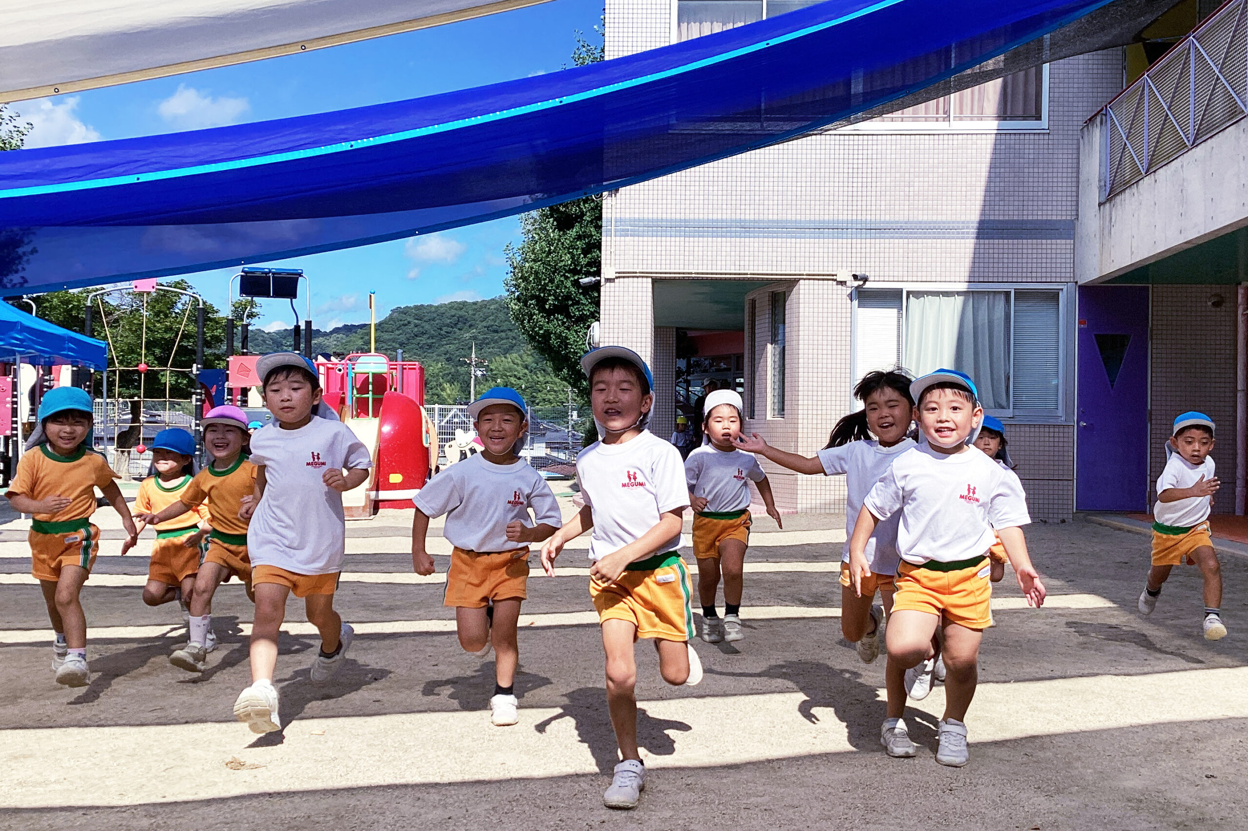 尾道市栗原町にある、地域に根ざした認定こども園です。住宅地にありながら緑が多く、子どもたちは自然に親しみ、遊びの中でさまざまなことを学びます。園庭には多様な遊具があり、いろいろな運動遊びを通して、健康な心と身体を育んでいます。 園内の斜面を活かしたアスレチック山には、木々やどんぐりなど自然の恵みがあふれ、子どもたちの遊びをより豊かなものにしています。園内は、毎日、子どもたちの元気な声と笑顔であふれています。